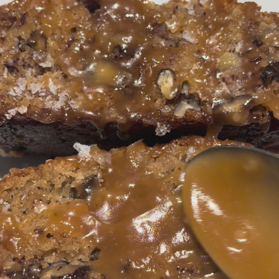 Banana Brat’s Salted Caramel Pecan Banana Bread is baked in small batches using overripe bananas and homemade caramel sauce, chopped pecans and finished with sprinkles of sea salt for a balance of sweet and savory. Baked fresh to order in New York City, each loaf is carefully packaged to ensure quality and flavor. Perfect for dessert, gifting, or an elevated everyday treat.